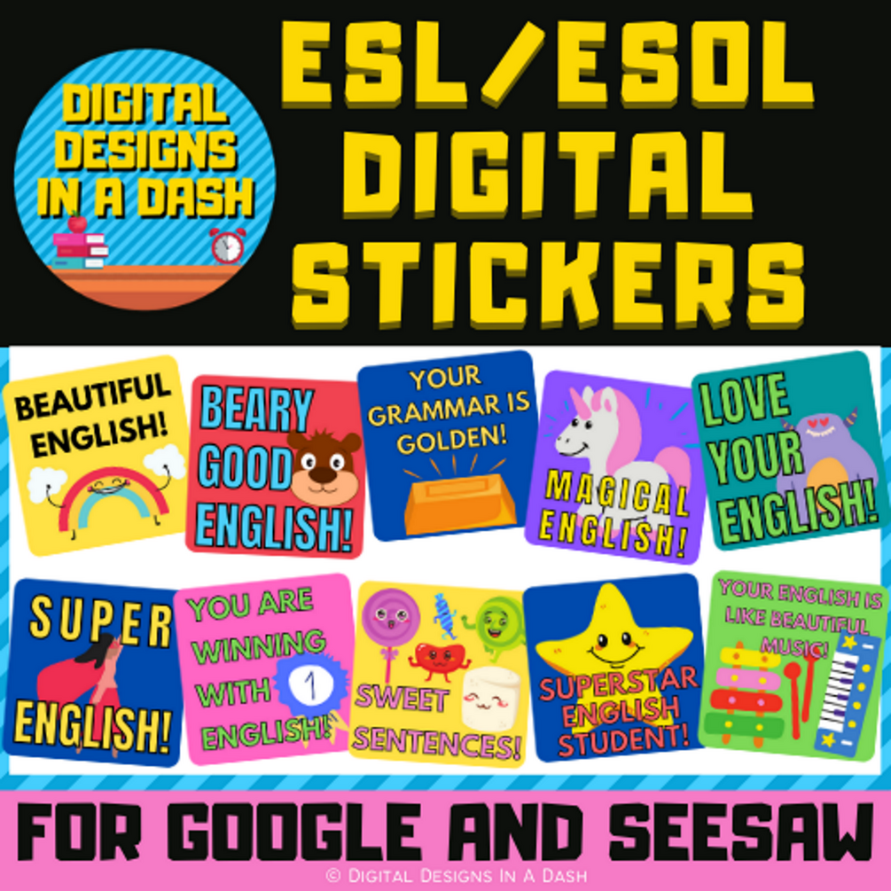 This encouraging Digital Stickers Clipart set is perfect for rewarding and motivating your ESL/ESOL and English students! There is a total of 10 stickers in color.